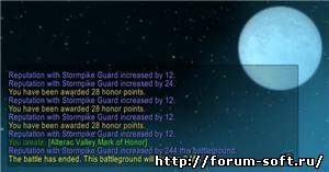 Этот аддон показывает сколько репутации будет выиграно по оканчанию БГ. Не меньше, не больше. Особенности: Показывает, сколько репутации выиграл в конце битвы. Нет необходимой конфигурации